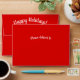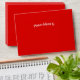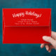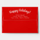 Please deliver to custom Merry Christmas envelopes. Red A7 preprinted envelopes with handlettered season's greeting on the back flap. Elegant personalised envelopes for Holiday party invites, greeting cards, xmas events, office mailing and more. Pretty brush script handwriting design. Custom handlettering calligraphy typography template. Chic envelopes with printed family surname and return address. Happy Holidays!