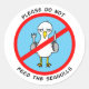 A sticker featuring a cartoon seagull with a knife and fork and the words please do not feed the seagulls. Perfect for any business or place which has trouble with gulls pestering their customers.