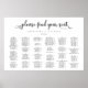 This minimal black and white alphabetical seating chart is perfect for an elegant and classic wedding. You can change the background colour. Just click the customise further link, shown under the text personalisation area on the right, and choose your custom colour background. This horizontal sign can be used to organise your guests alphabetically or by table number by changing the headings. This wedding poster includes enough room for up to about 100 guests. Make room for more (or less) guests by clicking the "customise" button and decrease or increase the size of the font.