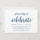 Modern Rustic, Navy Blue Script themed invitation card (with card title: please help us celebrate). It is perfect for your wedding elopement reception / post wedding celebration party. Add your details in matching black font / lettering.