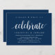 Modern Rustic, Navy Blue Script themed invitation card (with card title: please help us celebrate). It is perfect for your wedding elopement reception / post wedding celebration party. Add your details in matching black font / lettering.