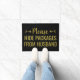 Funny, cute doormat in gold with black background: Please Hide Packages from Husband
