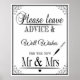 Please leave advice for the new Mr & Mrs wedding sign in black and white print