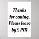 Thanks for coming, please leave by 9pm Funny Goodbye funny Introvert Poster