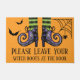 Fun, cute and cleaver halloween theme doormat. Our design features our own illustration of stylised witch boots and legs peeking from the top of the doormat against a bright orange background to create a fun, quirky halloween theme doormat design. Bats and spider web elements add to the halloween theme. "Please leave your witch boots at the door" is displayed below. All illustrations contained in this fun, cute and cleaver halloween theme witch doormat are hand drawn original artwork by Moodthology. You can customise the text size, text colour, font and layout for your own personal design preference.