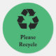 Please Recycle with Recycling Symbol on Green Classic Round Sticker