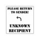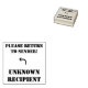 "PLEASE RETURN TO SENDER!", "UNKNOWN RECIPIENT" RUBBER STAMP