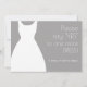 Will you be my bridesmaid proposal cards in grey and white. Design features silhouette of a dress and text reads, Please say Yes to one more Dress! I promise it won't be hideous. Easy bridesmaid proposal template you can change the funny I promise wording and personalise on the back with each bridesmaid's name and your special message asking her to be in your bridal party and stand along side you on your wedding day. Tiny white heart embellishment on the back side. If you don't see a colour you want, please contact us with your request! Thanks.