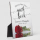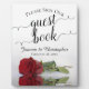 This beautiful sign will let your guests know that you'd like them to sign your guest book. It features a gorgeous design with a single red rose reflected in a pool of water with ripples and waves. The caption reads Please Sign our Guest Book in lacy calligraphy. There is space for the couple's names and wedding date.