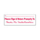 "Please Sign & Return Promptly To" Rubber Stamp
