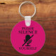 Round button keychain features a microphone on mute and the text "Please Silence Yourself" on a hot pink background or any colour you choose. Keychains make fun gifts for family and friends or create for yourself.