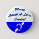 This button will let people know that you need them to speak up in order for them to hear you. No one likes to have to repeat what they say or have you say WHAT all the time. Help them know "up front" that you want to hear what they are saying! This blue is navy blue when printed.