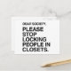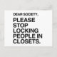 PLEASE STOP LOCKING PEOPLE IN CLOSETS POSTCARD