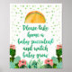 This please take home a succulent baby shower sign features a taco, flowing cacti, dots and text in a brush calligraphy font with a watercolor wash. More sign are available in this designs as well as a baby shower invitation and more.
