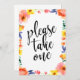 Please Take One Affordable Floral Wedding Sign