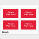 Please Wait Here Customisable Message Red Rectangular Sticker
