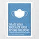 Covid-19 may require the use of face masks in your business, store or office environment. Make sure people understand that wearing a face mask is a requirement in and around your business with his Coronavirus poster. The design shows a white face mask with the text "Please wear your face mask beyond this point" in large clear lettering. At the bottom a line can be added which includes your business name and a phrase that shows you appreciate the cooperation of individual clients, customers and visitors.