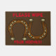 Ask your guests to "please wipe your hooves" with this mat decorated with horseshoes.