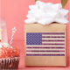 This patriotic design features the United States flag in vintage colours with the entire pledge of allegiance along the red stripes.