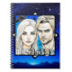 AI art depicting a male and female Pleiadian alien extra terrestrial race with a starry UFO background.