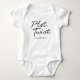 Modern typeface on a simple white baby bodysuit. Congratulations on your amazing plot twist.