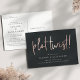 Need to change your wedding date? Notify guests with this modern and lighthearted postcard featuring "plot twist!" in faux rose gold foil handwritten lettering on a rich, soft black background. Personalize with your names and new wedding date beneath in white lettering.