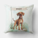 Add rustic charm to your home with this Plott throw pillow featuring a watercolor design and customisable name flag. Great for cabins or family homes with Plott Hounds.