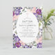 Elegant violet and plum floral baptism, christening or dedication invitation with hues of purple and blush pink designed to be quickly and easily customised to your event specifics.