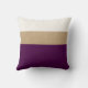 This modern colour blocked pillow features purple, faux gold leather and white stripes.