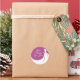 A chic bridal shower favour sticker featuring an elegant wedding gown on a plum background with a beautiful white script text and all your special bridal shower details personalised in chic text. You can customise the background colour to coordinate with your wedding theme.