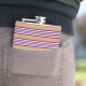Plum and white five stripes pattern with tan hip flask