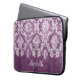 Plum and White Grunge Damask Pattern with Name Laptop Sleeve
