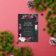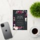 Chic floral bridal shower invitation features a border of burgundy marsala purple, blush pink, and dusty blue flowers, with lush botanical foliage and greenery and gold foil trim. Personalise with your bridal shower details in modern lettering on a rich charcoal background.