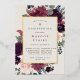 Chic floral baptism or christening invitation features a border of burgundy marsala purple, blush pink, and dusty blue flowers, with lush botanical foliage and greenery and gold foil trim. Personalise with your church ceremony and celebration details in modern lettering on a rich ivory off white background.