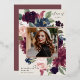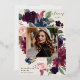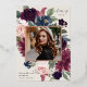 Our Plum Blossom graduation announcement frames a photo of your graduate with an elegant square border of lush watercolor foliage and flowers in blush pink, burgundy plum purple and dark dusty blue, with real rose gold foil trim on a rich warm ivory background. Personalise with your graduate's name, class year and school. Add a personal message to the back, along with an additional photo.