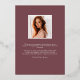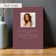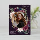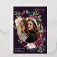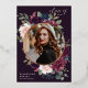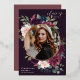 Our Plum Blossom graduation announcement frames a photo of your graduate with an elegant round border of lush watercolor foliage and flowers in blush pink, burgundy plum purple and dark dusty blue, with real rose gold foil trim on a rich dark purple background. Personalise with your graduate's name, class year and school. Add a personal message to the back, along with an additional photo.