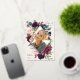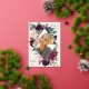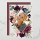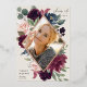 Elegant floral photo graduation announcement features a vertical photo in a diamond shaped frame of watercolor flowers and foliage in rich shades of dusty rose pink, burgundy plum purple, sage green, and dusty dark blue with rose gold foil trim. Personalise with your graduate's name, class year, and school. Add a personal message to the back, along with an additional photo.
