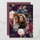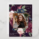 Our Plum Blossom graduation announcement frames a photo of your graduate with an elegant square border of lush watercolor foliage and flowers in blush pink, burgundy plum purple and dark dusty blue, with real rose gold foil trim on a rich dark purple background. Personalise with your graduate's name, class year and school. Add a personal message to the back, along with an additional photo.