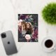 Our Plum Blossom graduation announcement frames a photo of your graduate with an elegant square border of lush watercolor foliage and flowers in blush pink, burgundy plum purple and dark dusty blue, with real rose gold foil trim on a rich dark purple background. Personalise with your graduate's name, class year and school. Add a personal message to the back, along with an additional photo.