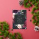 Our Plum Blossom wedding save the date frames your wedding details with an elegant square border of lush watercolor foliage and flowers in blush pink, burgundy plum purple and dusty blue, with real gold foil trim on a rich charcoal background.