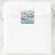 Red plum blossoms outstand in the silvery snow landscape. With many plum flowers, branches spread through the picture, also carrying the fragrance to the air. Swallows fly by, praising the beauty of flowers and bringing the message of upcoming spring. Different colours of snow cover the mountains, including turquoise blue and pure milky white, both contrary to the glowing red blossom.