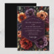 Rich plum and deep magenta florals bloom vibrantly against a dark, moody background. Hints of burnt orange and amber add warmth to this lush, opulent floral arrangement, evoking a sense of deep romanticism.