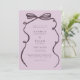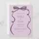 Whimsical and modern wedding invitation template card featuring hand drawn illustration of bow as a frame in plum colour. Customise this invite by adding your own wedding information.