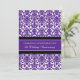 5th wedding anniversary party invitation card in elegant eggplant dark purple, black and white modern floral damask pattern, delicate and contemporary. Customisable with your party details.