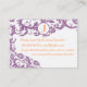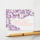 Royal Black Damask Wedding RSVP Response Cards Shown with the beautiful paper colour showing which is felt - you choose background colour from almost 200 colours and papers which alter the colours so click on customise and create your one of a kind invitation! shown with coral and lilac fonts - you choose colours in fonts as well - if you would like a glossy finish (glossy on front side only) order the basic, linen or metallic papers - for a matte finish order recycled, felt or speckled.