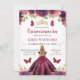 Elegant watercolor Blonde haired princess in plum purple dress design with purple and gold flowers, butterflies and gold glitter confetti.