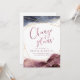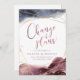 Modern Calligraphy plum purple "change of plans" and glam faux gold glitter geometric lines on moody burgundy and navy blue watercolor background, modern and chic, inform your wedding guests the updated information with this wedding postponement cards.