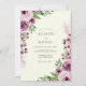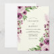 This design features a lush arrangement of watercolor roses in shades of plum, mauve, and dusty rose set against a soft cream background. Delicate greenery and sage green leaves accent the floral clusters, creating a romantic and ethereal mood. The artwork showcases botanical details, including blooming peonies and tiny purple filler blossoms.