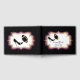 Sports themed wedding guest book done in black with graphics of a decorative plum, white and gold framed text area, on the front and gold and black football and high heel accents. Personalise the custom text fields for your wedding day.