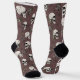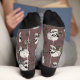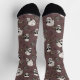 These fun feminine gothic socks are hand-drawn in black ink by Nathalie Portet, featuring whimsical skulls and blush pink and cream roses and spiderwebs. Dark plum background.